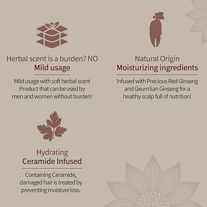 Formulated with chrysanthemum, ginseng, rehmannia root, mugwort, and keratin complexes, it helps reduce breakage, boost shine, soothe the scalp, and restore natural resilience. Perfect for daily nourishment or weekly deep repair.